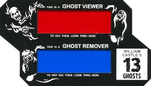 E infine c’è “Illusion-O”, lanciato con il film 13 Ghosts: tutti gli elementi nell’inquadratura, ad eccezione dei fantasmi, erano sottoposti a un filtro blu. I fantasmi invece avevano un filtro rosso, ed erano sovrapposti all’inquadratura. Il pubblico riceveva delle schede con filtri rossi e blu: guardando attraverso il filtro blu, non si potevano vedere i fantasmi. Attraverso il filtro rosso, invece, potevano essere visti.